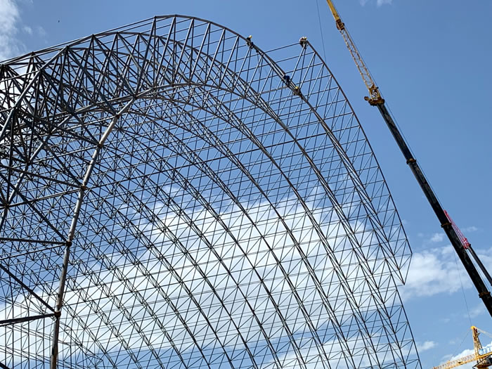 (2)网架加工前应对现场尺寸进行复测,确认无误后方可进行加工、安装;网架制作、运输、安装应遵守《空间网格结构技术规程》JGJ7-2010、《钢网架岑溪螺栓球节点》JG/T 10-2009、《钢网架岑溪螺栓球节点用高强度螺栓》 GB/T 16939-2016、《岑溪钢结构岑溪工程岑溪施工规范》 GB50755-2012、《岑溪钢结构岑溪工程岑溪施工质量验收标准》 GB50205-2020。